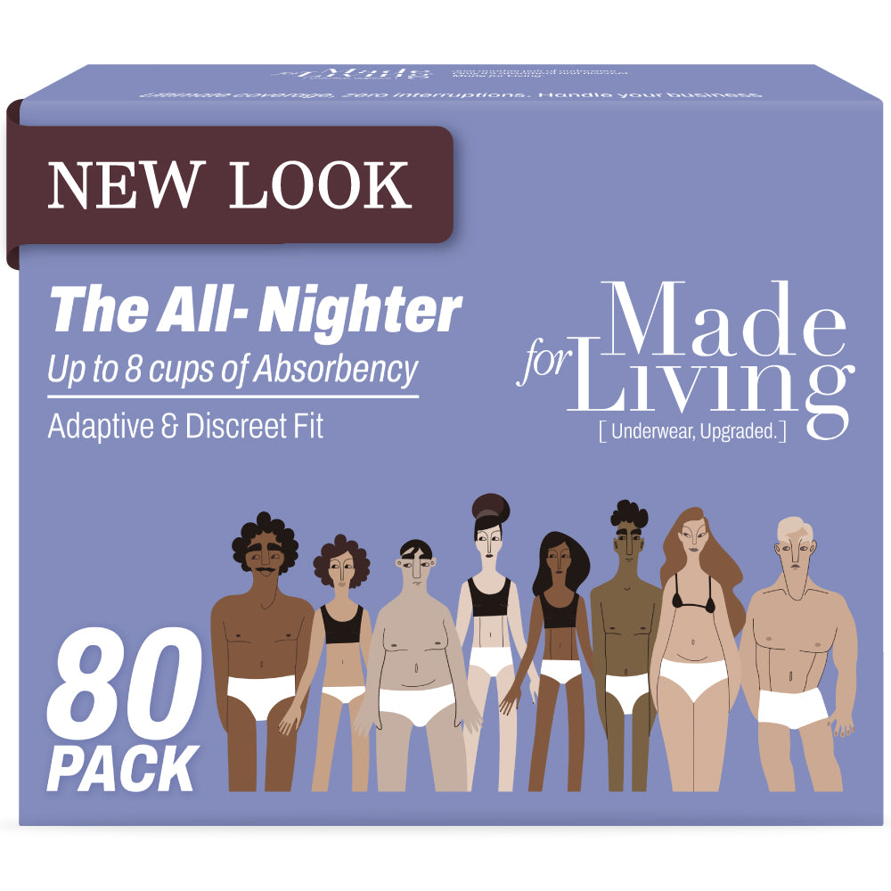 Up to 8 cups (61 fl oz) of protection for nightime confidence with a stable, discreet fit for uninterrupted extended wear.