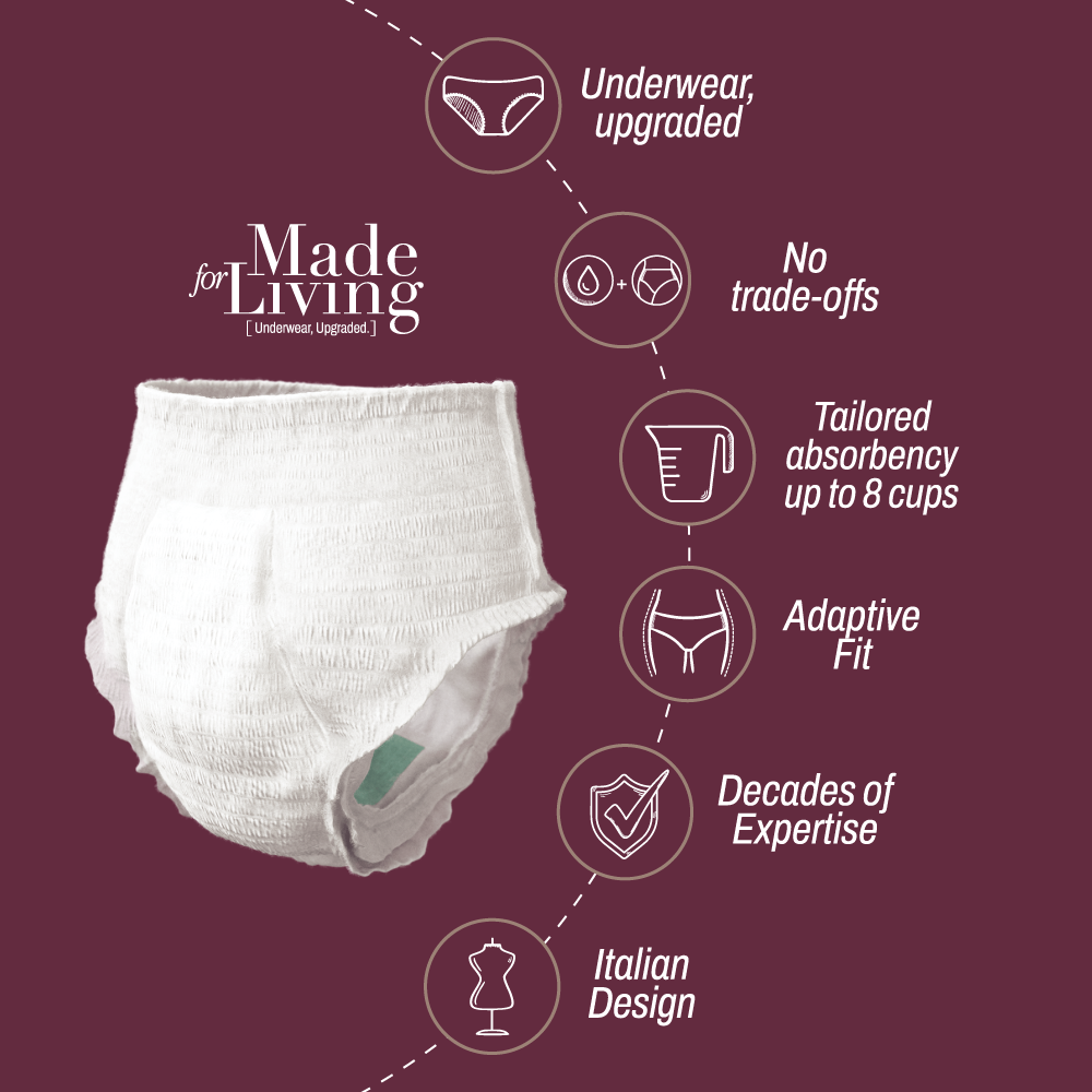 Over 30 years of absorbent innovation, reimagined for adults with superior comfort and discretion.